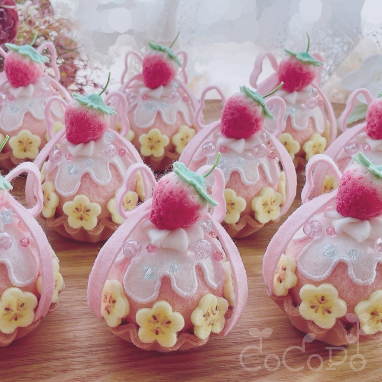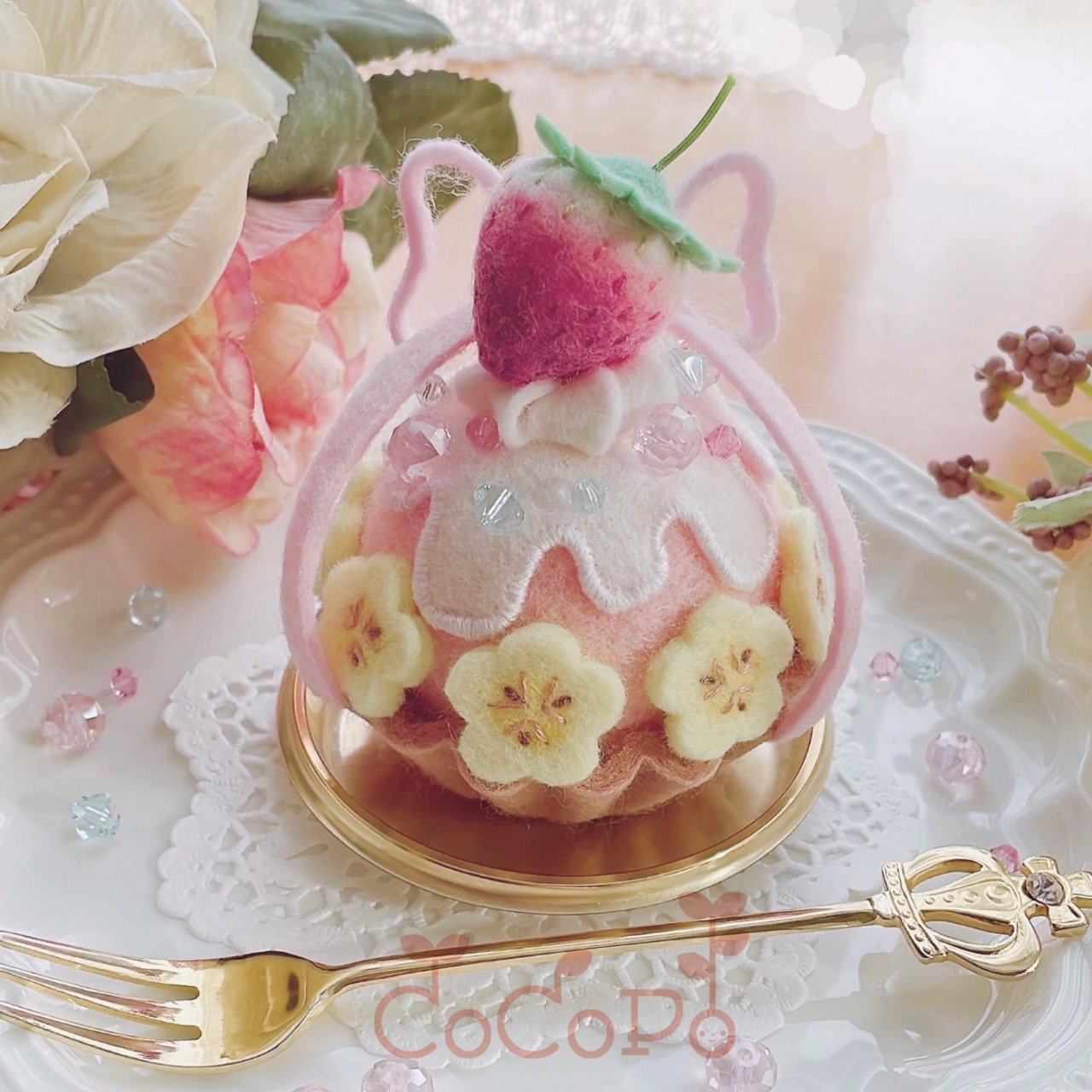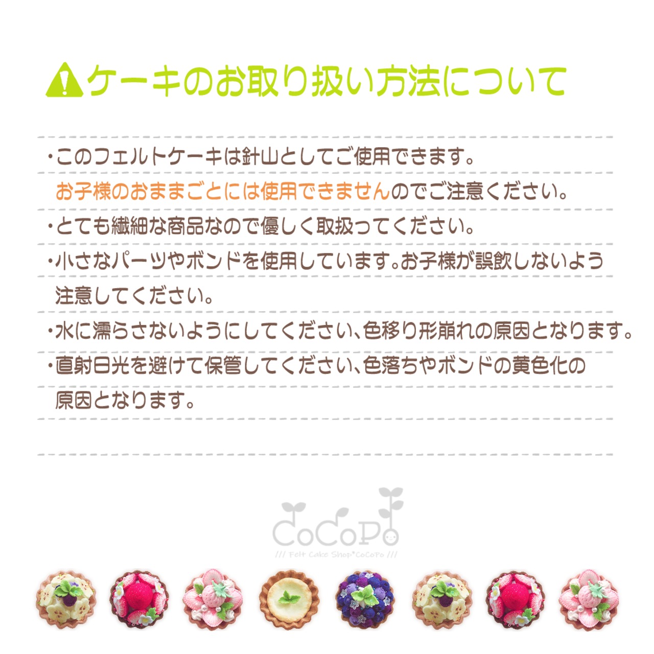 当店のケーキは映えを意識したフェルトのフェイクスイーツ(針山)です。